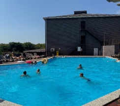 Уже 3 раза были в бассейне, все очень нравится. Бассейн теплый, шезлонгов много, всем хватает. Всегда есть солнечные места и места в тени