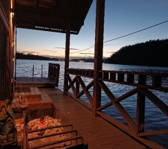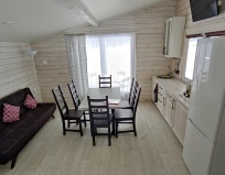 Понравилось: прекрасное место!Понравился домик,у нас был с двумя спальнями,мы были с мужем и собакой,все идеально чисто,панорамные окна!а чего стоит горка для катаний деревянная!все с подсветкой все для людей,посещали дровяную баню на воде-это сказка!очень вежливые хозяева,все на полном доверии.