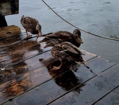Рекомендую всем закупаться крупой для уток. Я брала перловку и замачивала ее в воде. Утки распробовав, составили нам компанию на все время, пока гостили в домике.