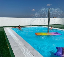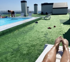 Бассейн на крыше есть, но он открытый, без подогрева и холодный, причем всегда, поэтому купание там на любителя + некоторая проблема в самом покрытии перед бассейном, которое видимо уже несколько "устало".