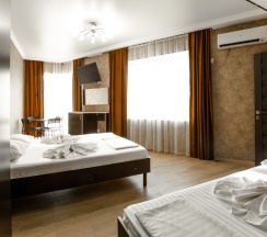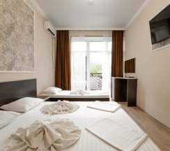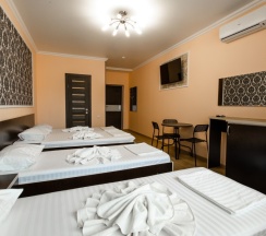 Во всех номерах имеется все необходимое для хорошего отдыха: телевизор с плоским экраном, кондиционер, холодильник. санузел, душевая, Wi-Fi .