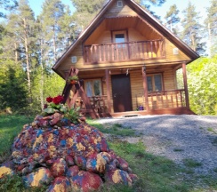 Уютный тёплый домик в лесу : в отдалении от пешеходов и гула машин. Не смотря на то , что домик кажется маленьким - вполне вместителен, мы отдыхали двумя семьями(4 взрослых и трое детей).На кухне есть всё для комфортной готовки.Мангальная зона позволяет готовить еду на улице. А уютное крыльцо дома позволяет проводить на свежем воздухе все приемы пищи , да и просто коротать вечер за кружкой чая после долгой прогулки.Красивый лес прямо за окном : заросли черники , брусники сразу же по приезду поманят вас на эту прогулку.