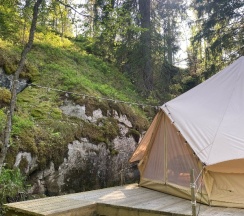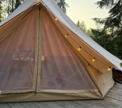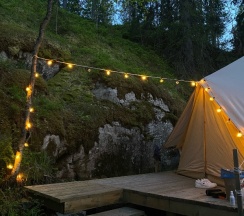 Мы замечательно провели время. Прекрасная гостеприимная семья, стильные и теплые шатры. Видно, что вкладывали в это место душу. Рядом есть очень красивое озеро и много видовых мест. Ходили в баньку и катались на каяках- рекомендую! Уже хочется вернутся и показать это место всем друзьям.