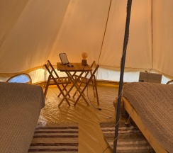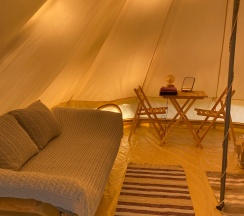 Начну с палаток. Отдыхали мы в палатке под горой. Все палатки расположены на приличном расстоянии от друг друга, уединенно. Расположены в тени, поэтому палатка не нагревается. У палатки есть мангал, стул со стульями. В палатке все очень стильно, комфортно и эстетично. В шатре есть матрас с подогревом, за что отдельный плюсик. Не холодно и не жарко.
