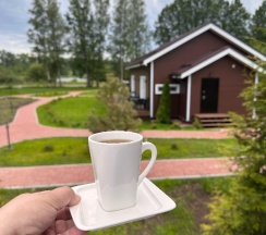 Очень уютные современные коттеджи. Отличная планировка для семьи с детьми. Вообще все есть! И озеро для купания! Отличный капсульный кофе. Удобное расположение. Все точки в 5 минутах езды. До Тригорского пешком 10 минут. В то же время тихо.