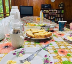 В бытовом плане всё понравилось, напор воды хороший, бойлер работал отлично, электричество без перебоев, чистое бельё и полотенца. Большой плюс это отдельное здание кухни-столовой, со всей необходимой техникой, посудой и утварью. Удобно готовить, как дома.