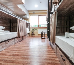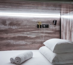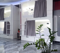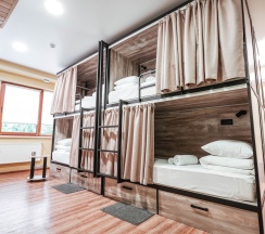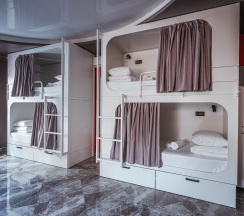 Для размещения Гостям предлагаем чистые и комфортные номера категорий Эконом, Стандарт и общие номера для мужчин и женщин на 10 человек. В общих номерах спальные места оборудованы розеткой, держателем для телефона, два индивидуальных освещения (для освещения всей капсулы и для чтения, двумя персональными полочками для необходимых мелочей, светонепроницаемой шторкой, местом для хранения личных вещей и шкафчиком с ключом. Душевые и туалетные комнаты — мужские и женские отдельно, расположены на этаже. Каждый номер оборудован кондиционером. В некоторых номерах есть телевизор. Гостям предлагаем ортопедические матрасы, белоснежное постельное белье и два махровых полотенца.