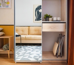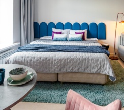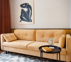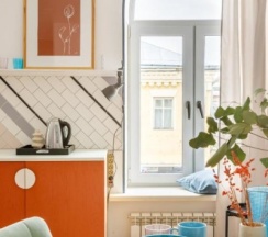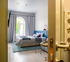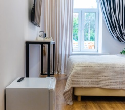 Вместительный номер-студия для размещения максимум 4 взрослых и 1 ребёнка (до 3х лет). Оснащен: ванной комнатой, мини-кухней, холодильником, кухонными принадлежностями, необходимой посудой.