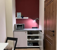 Номер имеет кодовый замок с возможностью самостоятельного заселения. Все гости апартаментов по своему желанию могут пользоваться общей кухней.