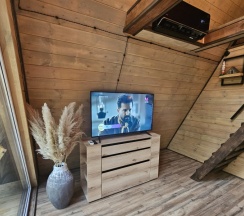 Эстетическое удовольствие вы получите сразу, переступив порог домика: декор, натуральное дерево, мебель и аксессуары ручной работы.