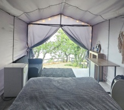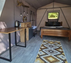 Очень понравился отдых в глэмпинге Очаг !!! Встречает отзывчивая администратор Анастасия, всё расскажет и поможет с любым вопросам. Из удобст в Сафаре Тент есть свет, холодильник и чайник. Общая кухня, душ и туалет. Общая территория для отдыха. Спуск в низ к морю 176 ступеней, на море не много людно, море очень чистое! Есть оборудованый пляж, есть два кафе где можно вкусно покушать (но это в сезон). Единственное, что нужно понимать, что Сафари Тенты расположены рядом друг к другу и если ваши соседи шумные, то и из-за этого страдает сон, хотя по правилам после 23.00 на территории должна быть тишина. Но вообщем впечатление очень положительные!!! Хочется вернуться и не раз ))) Спокойное и тихое место с прекрасными видами. Спасибо за замечательный отдых Глэмпингу Очаг 💕💕💕