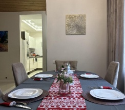 Приятная, современная обстановка, чисто, тепло, просторно. Все необходимое для проживания есть - от чайника и кофеварки до стиральной машины, сушилки и утюга. Все работает, все исправно.
