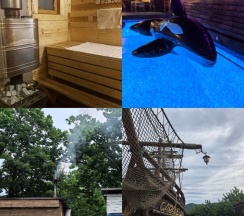 Замечательное место, отдыхаем семьёй с 5.06 , специально приехали не в сезон. База очень чистенькая, мы еще не успели глаза открыть работники базы уже навели порядок в местах общего пользования, беседка, бассейн, детская площадка. В домиках всё необходимое есть, можно и согреться и охладиться. Бассейн с подогревом. С собой нужно только полотенце, даже губки и моющее для посуды выдают, вся посуда в наличии в том числе шампура и решетка. Так же на территории имеется банька с выходом в бассейн, это вообще топчик, прохладными или дождливыми вечерами посидеть с хорошей компанией, после окунуться в прохладный бассейн, это вообще красота. Нам очень приглянулось это место, с детьми тихо спокойно отдохнули.Так же можно сдать в стирку вещи за небольшую плату.