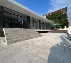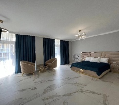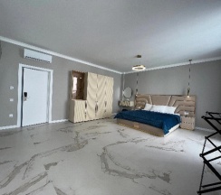 Отель новый . Одноэтажный . Пока номеров не много . Но в будущем хозяин сказал что будет отстроен 2,3,4 этаж . Ремонт отличный стильный современный . Руководство отзывчивые приветливые люди . До моря реально 10 мин от силы .