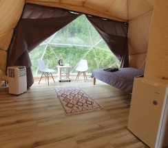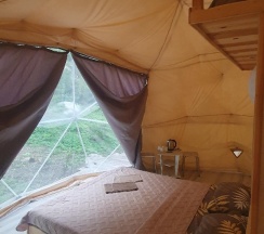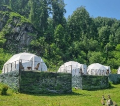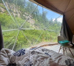 Очень атмосферное место,тихо и красиво вокруг,все удобства,первый раз для себя открыли отдых в глэмпинге, хозяева доброжелательные, всё нравится!!! Вид необычный на горы.
