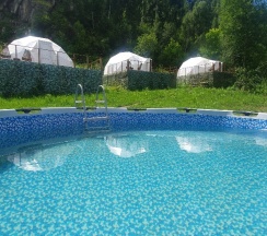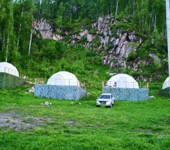 Хотели проскочить Аю транзитом. Осмотрелись, решили остановимся в «Хижине», бассейн там прикольный. Думали переночуем, позагараем , искупаемся и дальше. Но мест не хватило. Посоветовали « Горыныча». Вскарабкались на гору. А красота же! Шатры, горы, вид, на речку и тишина. Евгений - хозяин великолепия поведал и где народные напитки, и где свежее мясо, организовал трансфер до магазина, рассказал про маршруты, на которых мы не бывали, указал, где подешевле и качественнее услуги. Вобщем зависли на три дня. Жгли костер, плов в казане готовили. Приедем еще! Евгений, Светлана, готовьтесь! P.S. В «Хижину» в баню и на лежаки с бассейном ходили специально.