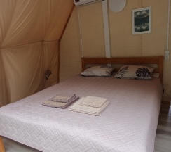Просторные шатры - внутри двухспальная кровать, холодильник, кондиционер, душ, санузел, все что нужно.