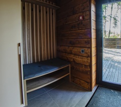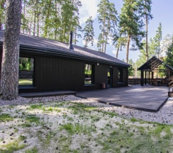 Вокруг дома многовековые сосны, сам домик внутри пахнет новьем, дорогая мебель и техника, чувствуешь себя как будто-то день из жизни миллиардера, чан с гидромассажем просто сказка, будем вас рекомендовать