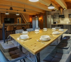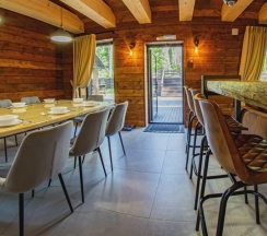 Отдыхали семьей и остались в восторге! Локация топовая-кругом огромные сосны, а чан просто пушка-бомба, с подсветкой, еще и эффектом джакузи. Дом очень уютный, в дереве, есть все для отдыха: от комплектов посуды, до караоке. Этот домик теперь в наших сердцах❤ Хочется побывать и в другие сезоны здесь!