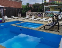 Хорошее место. Из плюсов бассейн, только купаться в нем только с 11 часов, до этого убирают. На третьем этаже кухня для самостоятельного приготовления еды, кондиционер в кухне отсутствует. Две мангальные зоны. Шумных компаний не было. На территории не курят, все выходят за ворота. Стоянка рядом с домом.