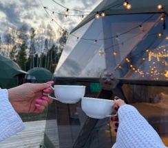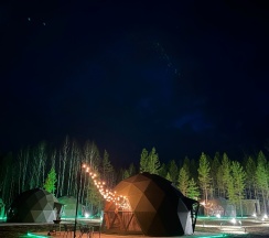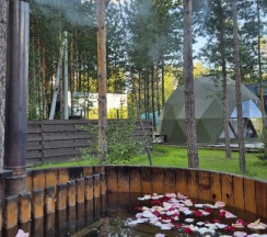 Приезжали большой группой, организовывали встречу бизнес клуба. Нам каждому участнику подобрали индивидуально домики, посоветовали по наполнению и индивидуальным предпочтениям. Расселили быстро и комфортно, домики отличные, оформления везде красивые. Вокруг спокойствие. Еду нам тоже полностью обеспечили и мы не отвлекались от работы. Еда очень вкусная, хотели дополнительно успеть подарить шашлыки, но даже сил не было уже больше есть, настолько было сытно )) купол со спортзалом оборудовали шторами, чтобы нам было комфортно. Природа и спокойствие вокруг обеспечили нам размеренную работу без суеты. В общем и отдохнуть и поработать получилось прекрасно. Прям отдельное спасибо всем и каждому сотрудникам, которые обеспечивали нам решение всех вопросов!
