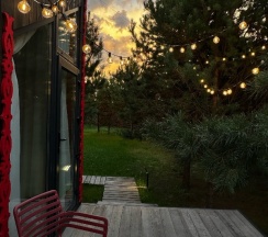 Мы хотели отдохнуть вдвоем, вдали от суеты и для этого все есть: домик Russian достаточно изолирован, классный интерьер и все предусмотрено до мелочей (за исключением сломанного проектора, который не смогли заменить и починить и нам не удалось посмотреть фильм), но это не критично для нас. Территория без особых развлечений (можно взять велосипеды, квадроциклы в прокат и на них же доехать посмотреть животных в зоопарке, который находится в самом поселке), но опять же нам это было не нужно.