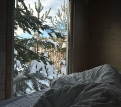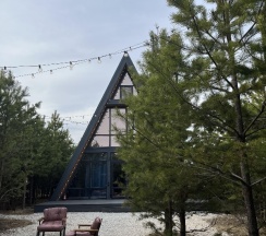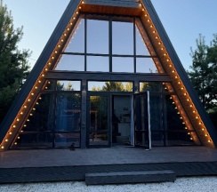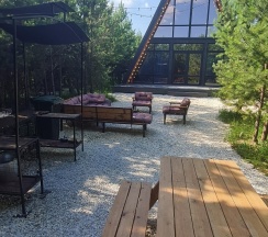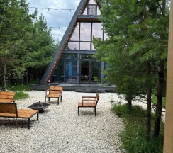 Бронировали большой А-фрейм. Все очень понравилось. Нас было 4 человека, места хватило всем! Отличная мангальная зона, есть где посидеть вечером на улице- есть чаша, для разведения костра. Дрова приносят. В доме камин- разжигали , очень тепло и душевно получилось! Отдельно конечно отмечаем чан! Это просто супер! все вопросы решались оперативно. В доме есть все- и отличная красивая посуда, и халаты ..… вообщем, все что нужно! Можно отметить некоторую обособленность домика, для нас это был большой плюс! Было тихо на территории! Нам очень понравилось! Большое спасибо! Рекомендую!