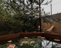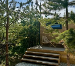Отдыхали 19.07.2025 в домике A-Frame рассчитан на 9 гостей, нас было 6. В большом восторге как от домика, так и от территории и персонале. Предусмотрено все. От разных видов посуды до ватных дисков, даже кофемашина есть. В чан добавляют еловые ветки и грейпфрут, очень приятно. Так как обычно в других местах за это полагается доп оплата, однозначно цена соответствует качеству. Залог возвращается в течении 3 ч после выселения, задержки не было. Однозначно вернемся еще🥰