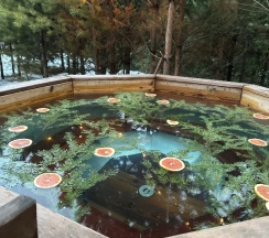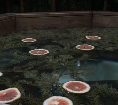 Шикарная территория, бомбический чан с грейпфрутом и елками, чистые и уютные домики