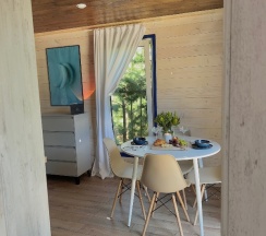 Самый лучший домик в котором была, вернусь еще точно и не один раз. Тишина, природа, в домике есть все необходимое, с собой вообще по минимуму можно брать. Очень уединенные домики, несмотря что относительно неделеко друг от друга стоят. Мы соседей практически не слышали только на улице днем, но это совсем не мешало, в домике отличная звукоизоляция. Кто хочет спокойно отдохнуть вам точно тут понравится!!! Спасибо вам за то вы есть😍❤️