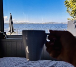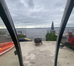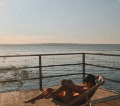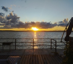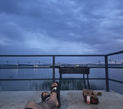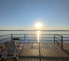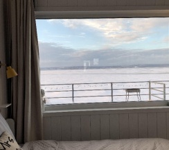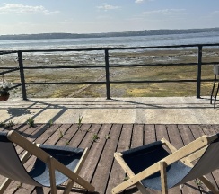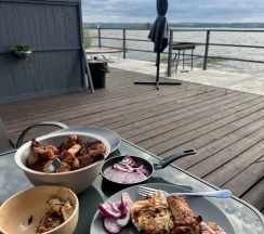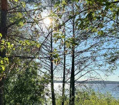 Вид — шикарный, места тоже приятные: сосновый лес рядом и пляж. Идеально — завтракать, обедать и ужинать на террасе с видом на реку. Это отдельный вид терапии)