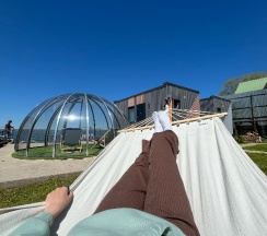 Классный глэмпинг. Очень гостеприимные и клиентоориентированные хозяева! Сам домик милый, уютный, в нём есть всё, что нужно для комфорта. Название говорит само за себя - вид и закаты тут бесподобные! Единственный природный минус - комары.