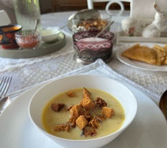 Шикарное место для загородного отдыха! Бронировала дневной тур (без ночевки) в группе ВК, провела время потрясающе! Алекса встретил меня в порту, довез до дома, накормил вкуснейшими блинами, напоил кофе и чаем из настоящего самовара… в доме благодать, очень красивый интерьер в стиле Прованс, столько мелочей и деталей, которыми хочется восхищаться и рассматривать ☺️ видно, что здесь живут люди, которые вкладывают душу в свое дело ❤️
