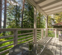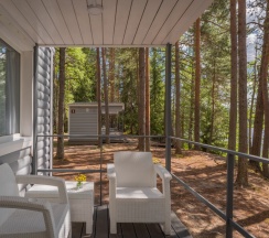 Уютный дом «Фэмили» с отдельной гостиной, спальней и просторной оборудованной террасой — идеальное место для семейного отдыха с детьми. С террасы открывается живописный вид на хвойный лес и озеро. Для всех членов семьи в доме есть удобные спальные места, а всем вместе можно собираться за столом в гостиной или на террасе, устраивать чаепития или играть в настольные игры.