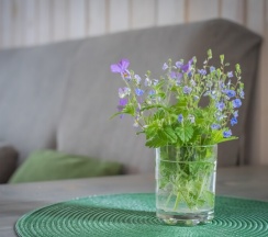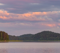 Комфортабельный двухкомнатный дом для отдыха с семьей или небольшой компанией друзей. Из больших окон открывается панорамный вид на озеро и лес. Рядом с домом есть собственная небольшая зона барбекю с мангалом и уличной мебелью.