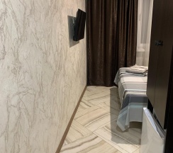 Ехали проездом с Тюмени… местные посоветовали гостиницу. По приезду я зашла на первый этаж и думала ошиблась дверью… совдепия! Но нет, гостиница то занимает третьи этаж! И вот там- красота! Чисто, красиво, уютно! Номер обалденнный! Душ, туалет, кроватка. Телевизор! Тепло! И всего за 2000 за двоих! Очень понравилось! Бонус- чай, кофе и вода в холле бесплатно!