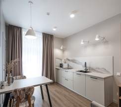 Останавливались с мужем здесь в конце сентября. Нам очень понравилось. Заселение произошло бесконтактно, быстро. Хорошее расположение на тихой улице. В апартах чисто, хороший ремонт, площадь небольшая,но продумана до мелочей, в том числе освещение! Мы много путешествуем и много чего видели, хозяева держат всё на отличном уровне, спасибо!