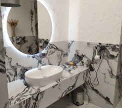 Роскошно, чисто, современно! Очень понравилось! В одном из номеров окна с видом на море, в остальных свет с крыши. До моря пару минут через дорогу. Рекомендую!