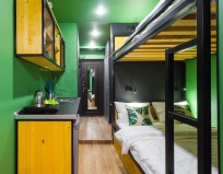 Расположение удачное. Правда пришлось пройти квест с заселением, но мы справились. Номер чистый, большое окно, в санузле есть фен, мини-форматы шампуня и геля, зубные щётки, на раковине флакон с жидким мылом. С водой перебоев не было. Интерьер красивый, мебель новая. Кровать удобная, ещё раскладывался диван, номер типа аппартаментов, поэтому был кухонный гарнитур, с мойкой, чайником, необходимым набором посуды. Что порадовало - положили сахар, чай, штопор, губка новая, вся сантехника исправная. Шумоизоляция нормальная, никого из соседей не слышали. Чемоданы оставляли под кроватью, когда выезжали, то обнаружили, что они все в пыли. Но в целом номер чистый, не к чему придраться, правда телек показывал плохо, возможно нужно сменить антенну или подключить кабельное тв.