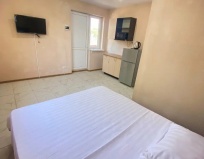 Новый гостевой дом, номер почти полностью соответствовал фото. Не было стульев - принесли и не было вешалки и комода (как на фото), чтобы разместить вещи. В номере сплит, телевизор, холодильник, чайник, микроволновка, стиральная машина-автомат (на фото её не было, по факту установлена прям в номере, есть таз и вешалки в зоне общей террасы), фен, WI-FI, посуда и т.д. Всё необходимое, в общем. Сняла звезду, т.к. ещё в санузле на второй этаж плохо поднималась вода и новые полотенца красили кожу. Меня сразу попросили дать обратную связь, т.к они только открылись и хотят выявить всё, что не учли. Это приятно, такой подход импонирует однозначно. Со мной всегда были вежливы, оперативно реагировали, заселение было вовремя. По итогу осталась довольна. Если исправят вышеуказанные нюансы, то будет отлично и с радостью остановилась бы снова. В Ейске не так много современных гостевых домов, пересмотрела огромное количество. Ещё очень удачное расположение, самый центр, всё в пешей доступности.