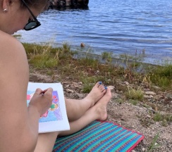 Скалы, горы.Вода теплая дети просто не вы лазили с воды даже в дождь))Нас кормили завтрак обед ужин,вкусно как дома повара молодцы👍Весь персонал хорошие доброжелательные люди , за это отдельное спасибо приятно было общаться )