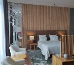 В резиденции хороший ремонт, как в самом номере, так и в целом в отеле. У нас был премиум, удобная большая кровать, хороший матрас, большой телевизор, все основные каналы, система умный дом - шторы сами всё делают) свет включается /выключается через планшет 😌.