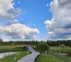 На велосипедах можно бесплатно (входит в стоимость проживания) кататься по территории, а территория действительно огромная... Газоны постриженные, воздух лесной, есть озеро, мостики