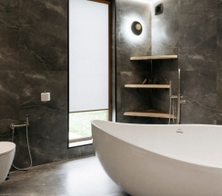 Для отделки и декора домика мы вдохновлялись мотивами природы Красноярского края. Акцентная сочно-зеленая стена и контрастный желтый диван напоминают хвойно-лиственные леса заповедника «Красноярские столбы» осенью. Каменный декор, использующийся как в отделке кухни, так и ванной напоминает величественные скалистые берега Красноярского водохранилища. Весь дом вдохновлен прелестями и богатством Сибирской природы.