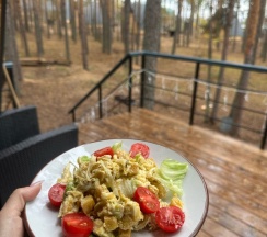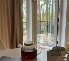ДОМ - ну тут отдельная история, мне понравилось все от и до. Внешний вид, качественная мебель, уют, красивейшая посуда и чайник. Удобная кровать и прекрасный вид, когда просыпаешься.