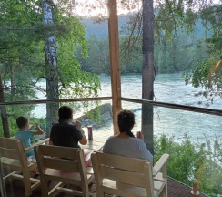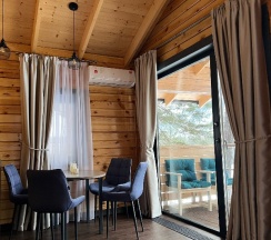 Дошла очередь до заселения, подходим к домику, а он не 2х этажный, администратор дословно: проведенён абгрейд этого домика и он лучше 2х этажного, т.к. с отдельной комнатой, мы не прихотливые, ладно согласились, хотя вид со 2го этажа я думаю то же не плохой, но сам факт был не приятен и впечатление сразу смазалось, 100% за счет работы администратора.