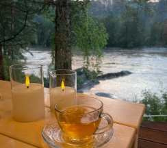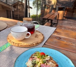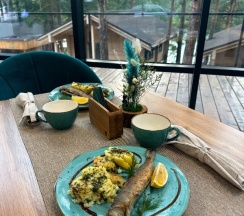 Наше Шале было на береговой линии, вид потресающий, есть всё необходимое, но добавила бы стаканы и поменяла диван, спать на нем не удобно, не предназначен для сна, заатраки вкусные и разнообразные, хотя кофе пришлось покупать, но есть чайный столик со сладостями