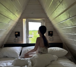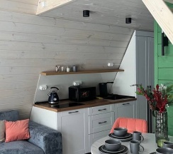 Отдыхали с семьей в новогодние каникулы. Сняли А-фрейм, для семьи из 4-х человек самое подходящее . Полноценные спальные места на 1-м и на 2-ом этажах, мини кухня со всеми необходимыми атрибутами в нашем современном мире. Посетили баню и чан . Очень довольны. Надеемся вернуться летом , покататься на катамаранах и позагорать на берегу озера. Рекомендую.