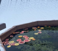 Остались в восторге от этого места! Невероятно красивая природа, чистые, абсолютно новые домики со стильным интерьером и всем необходимым внутри, очень дружелюбный и отзывчивый персонал! Нас встретили и заселили в полдвенадцатого ночи, на утро затопили баньку и чан. Баня с шикарным панорамным видом, а в чан положили еловые ветки и грейпфруты – аромат был просто потрясающий! Обязательно вернемся ещё!