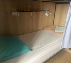 Отличный хостел! Выбирал прежде всего по расположению и по отзывам. И не прогадал:) в хостеле всегда чисто и тихо. Есть проектор. Есть вообще все что нужно для проживания. Легко приготовить пищу, есть большой холодильник. Удобный вход в хостел по коду на электронном замке. Кровати со шторками.